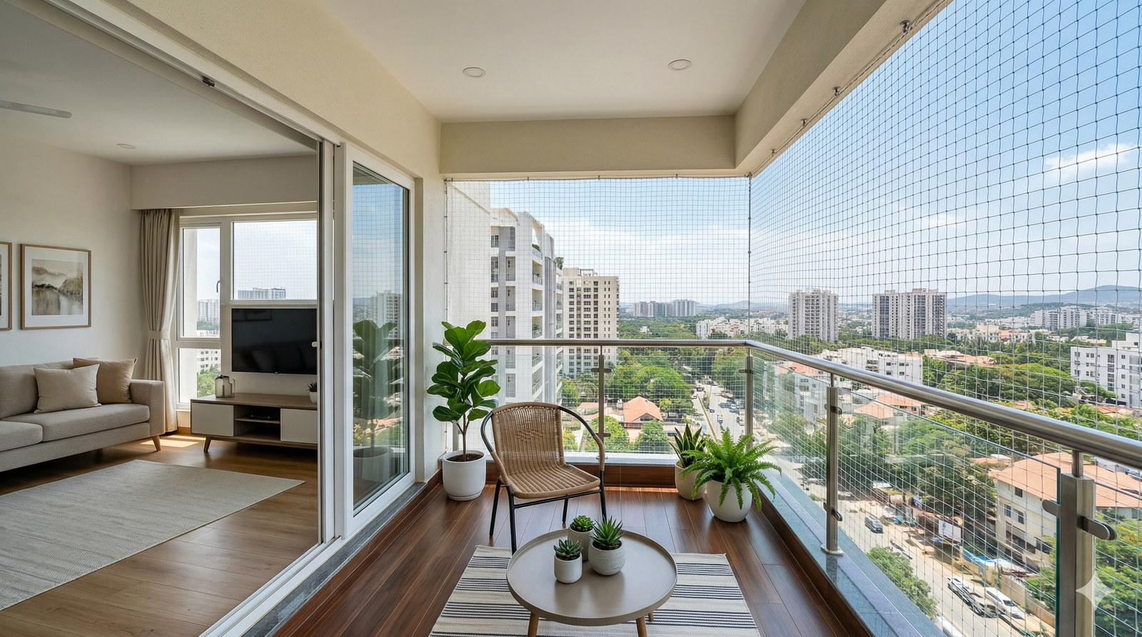 SS 316 marine-grade wire grills. Full protection with zero view obstruction β ideal for apartments.